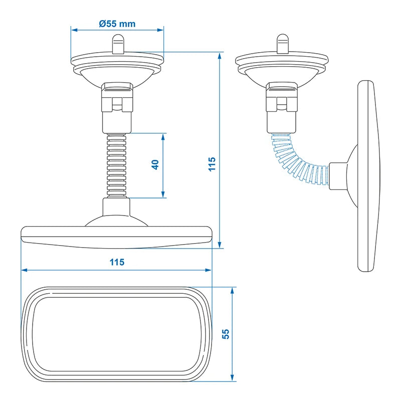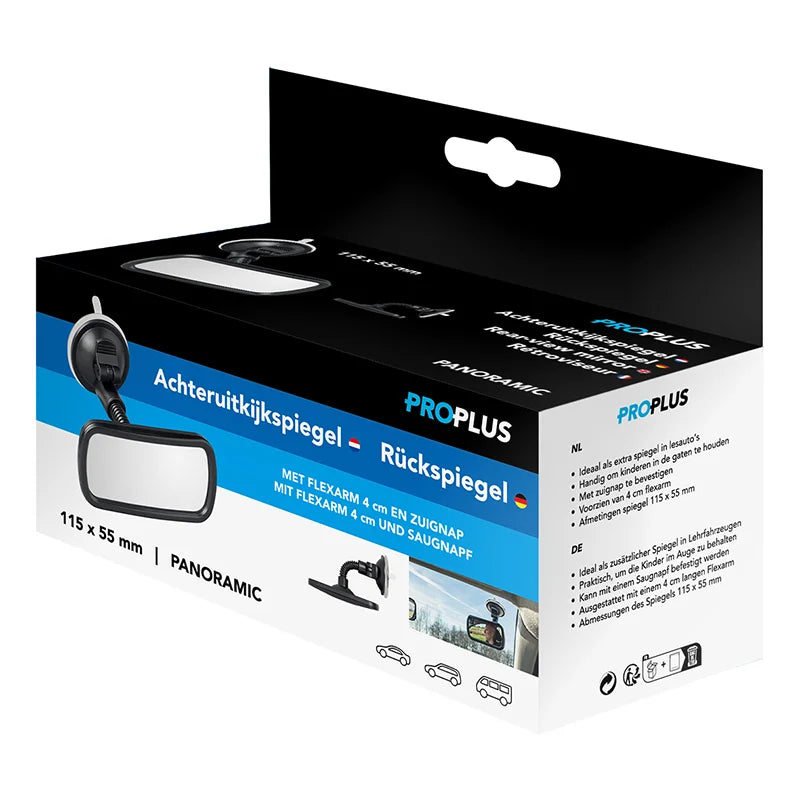 Lítill baksýnisspegill/hornspegill á 4cm armi með sogskál til að festa í framrúðu.