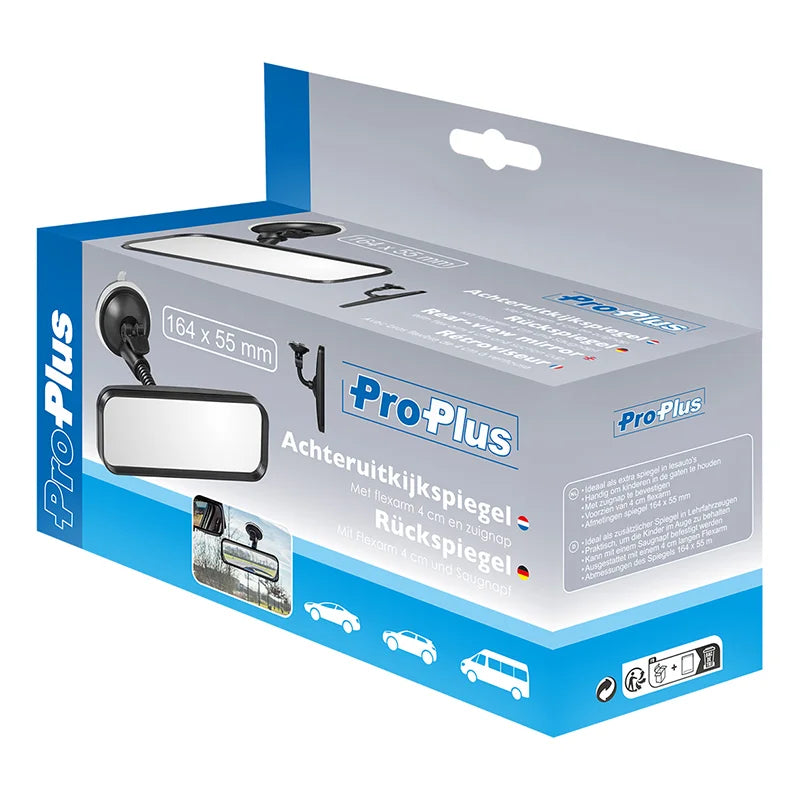 Lítill baksýnisspegill/hornspegill á 4cm armi með sogskál til að festa í framrúðu.